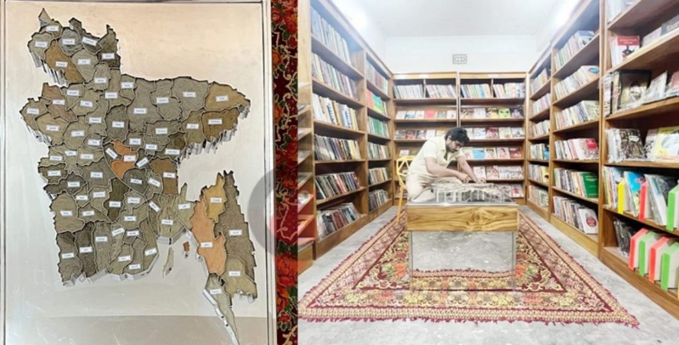 উন্মুক্ত গ্রন্থাগারের পর এবার ৬৪ জেলার মাটি সংগ্রহ করে বাংলাদেশের মানচিত্র তৈরি করেছেন বইপ্রেমী মানিক হোসেন। এ মানচিত্র থেকে ৬৪ জেলার মাটি স্পর্শ করা যাবে। পাওয়া যাবে একসঙ্গে সারাদেশের মাটির গন্ধও।
