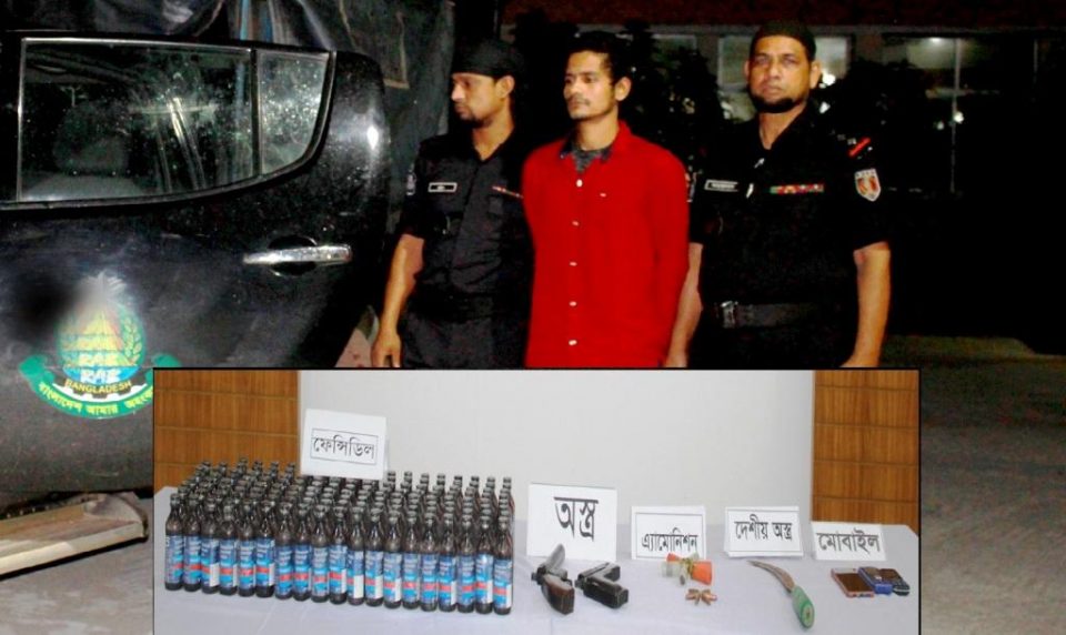 শুক্রবার র্যাব-৮ কার্যালয় থেকে প্রেরিত এক সংবাদ বিজ্ঞপ্তিতে জানানো হয়, গোপন সংবাদের ভিত্তিতে গত বৃহস্পতিবার রাতে বেলায়েতের বাড়ি অভিযান চালায় র্যাবের বিশেষ দল। এ সময় সে পালানোর চেষ্টা করলে তাকে গ্রেফতার করে তারা। পরে তার স্বীকারোক্তি অনুযায়ী তার বাসা থেকে বিদেশে তৈরী একটি পিস্তল, ১টি ওয়ানশুটার গান, ১২ রাউন্ড গুলি, ১টি ধারালো অস্ত্র এবং ১৫০ বোতল ফেন্সিডিল উদ্ধার র্যাব।